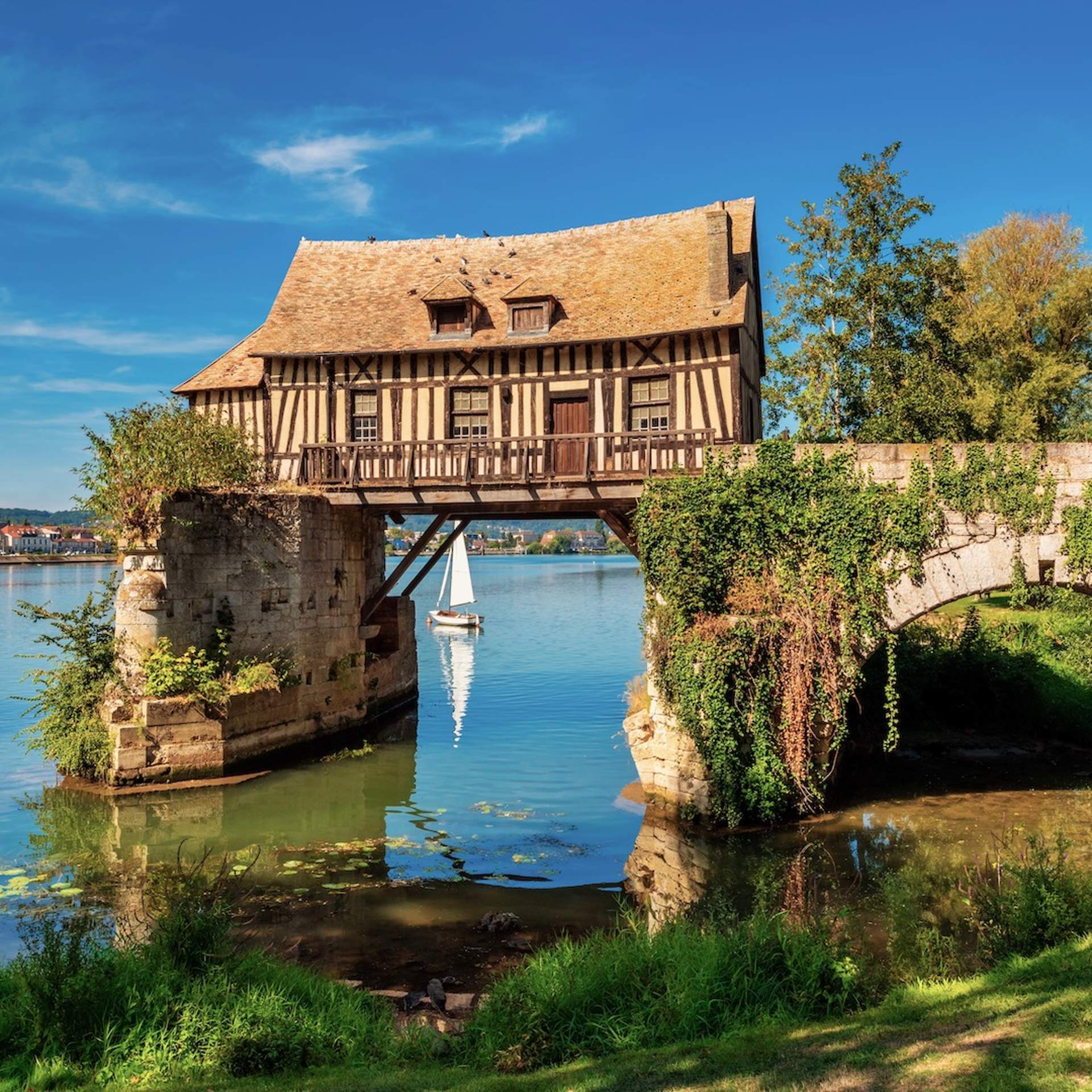 If you’re feeling energetic, cycle or stroll down the banks of the Seine towards the town of Vernon, famous for The Old Mill, a 14th-century timber house balanced between the ruined medieval bridge. The town’s motto reads ‘Vernon semper viret,’ which loosely translates as ‘Vernon always green.’ Rather fitting when you take the region’s glowing environmental reputation into account.