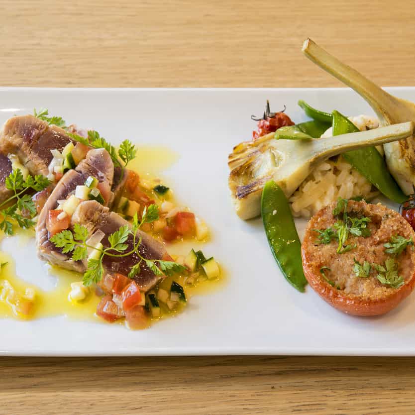 At Olivadors, chef Anthony Berry—who trained in Michelin-starred kitchens such as the Grand Hôtel de Cala Rossa and Les Lodges Sainte-Victoire—crafts a seasonal menu using fresh, local ingredients (like Sénas asparagus, La Fare strawberries, Eyguières tomatoes, Fourques melon, and organic goat cheese from the Alpilles).