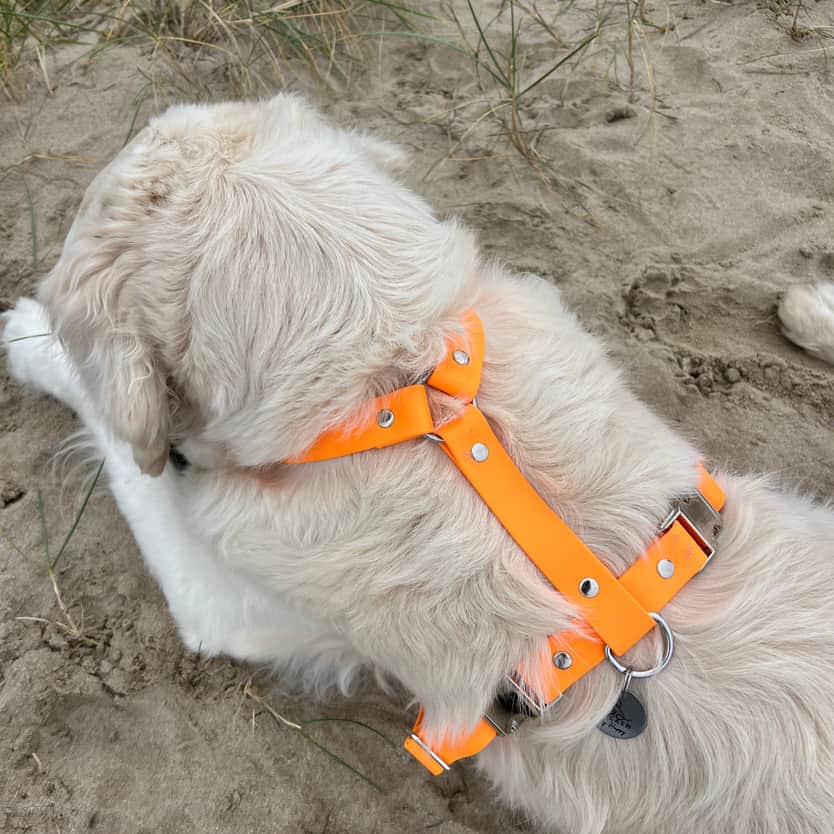 At Splash By Happy, adventure is led on four paws and two hands: Ambre, the passionate designer, and Happy, the mischievous golden retriever and official CEO of the brand 🐾. Together, they design and manufacture unique accessories made from biothane in their workshop in Normandy.