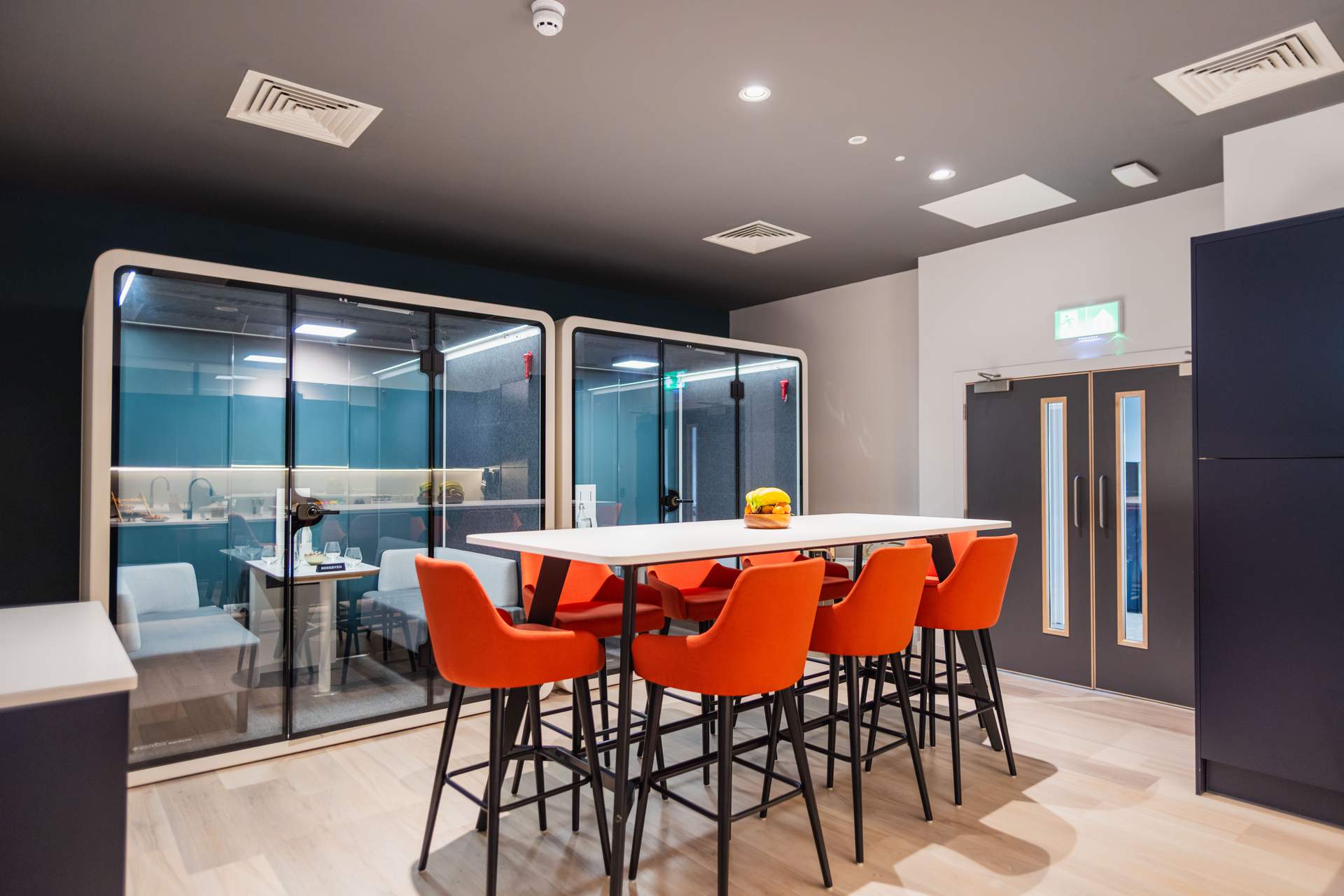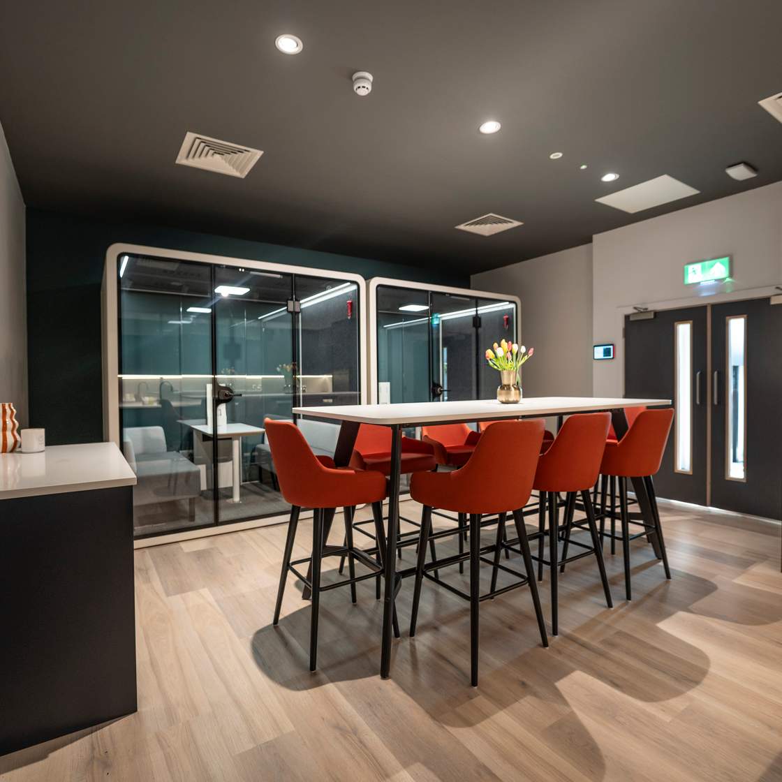 Looking for a cosy spot for a quick catch-up or small meeting? Our Pods are ideal for 3 to 4 people, offering a quiet space, perfect for one-on-one chats, brainstorming sessions, or informal meetings. Our Pods also make a great base for independent working when you need a change of scene in a relaxed environment.