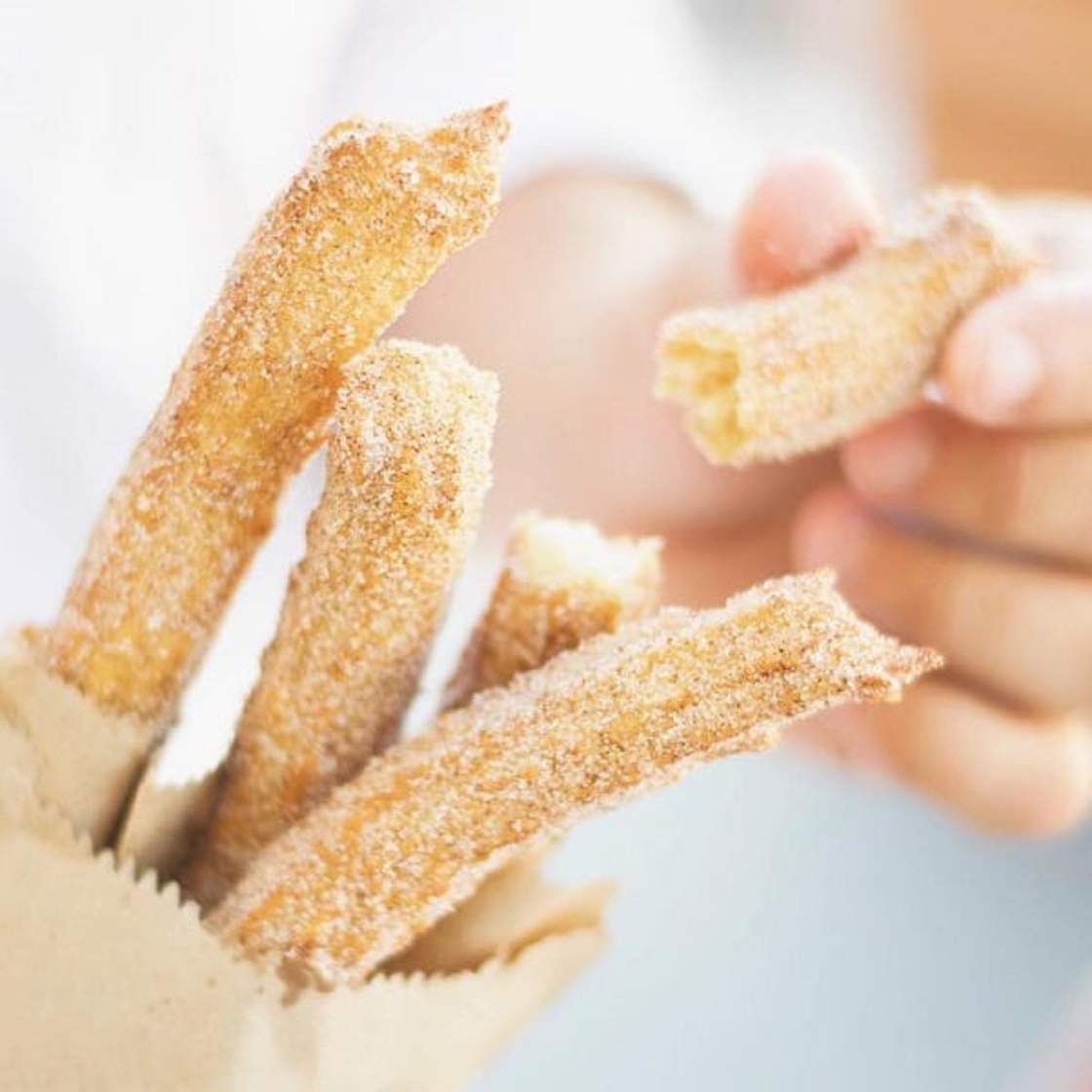 If you think of Spanish food, you might think of Paella and tapas, but Churros are also one of their specialities. Churros are a kind of fried doughnut/pastry in the shape of a stick. You can eat the churros with sugar and/or you can dip these in warm thick chocolate.