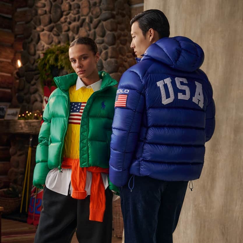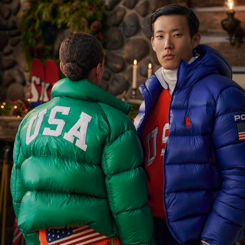 Introducing the Polo Ralph Lauren Team USA collection. The vibrant and dynamic energy of Milano Cortina 2026 inspires sporty graphics and bold color-blocking in signature styles.