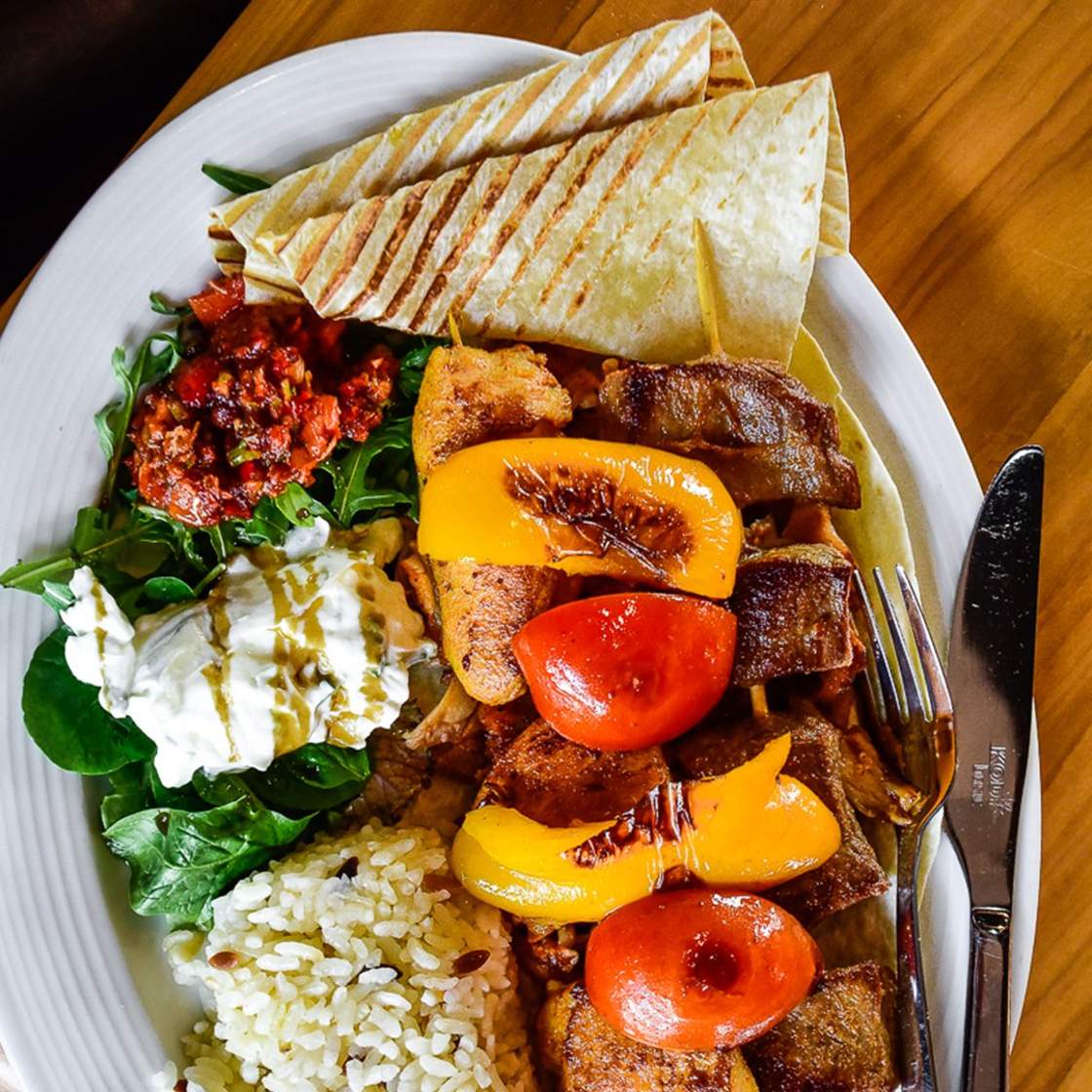 Boven een open vuur gegaard vlees, uitstekende verse bijgerechten, geserveerd op ovenvers brood: Bij Alice Premium Döner wordt het populaire gerecht uit Turkije nu eens in een volledig nieuw jasje geserveerd. In combinatie met het stijlvolle interieur blijft er maar één ding te wensen over: “Afiyet Olsun”, of zoals wij zeggen: “Eet smakelijk”.