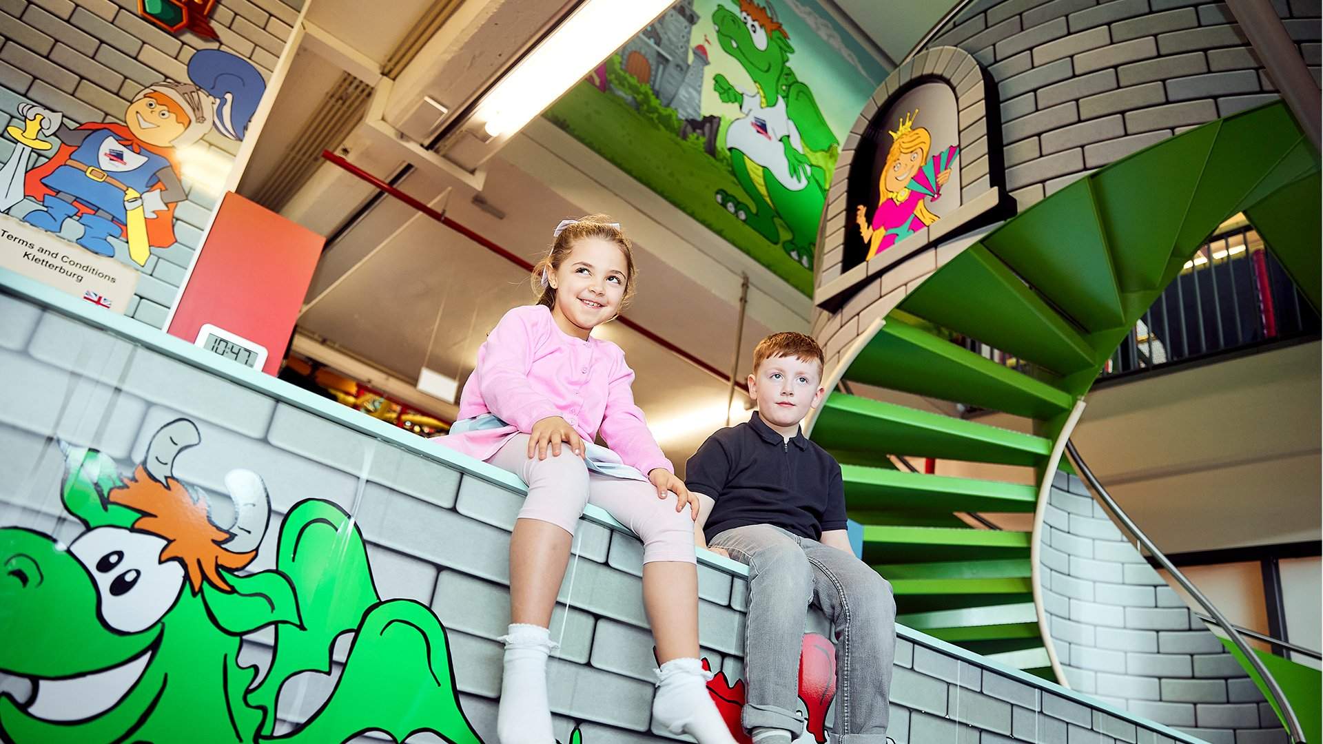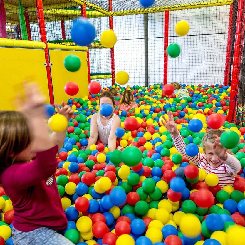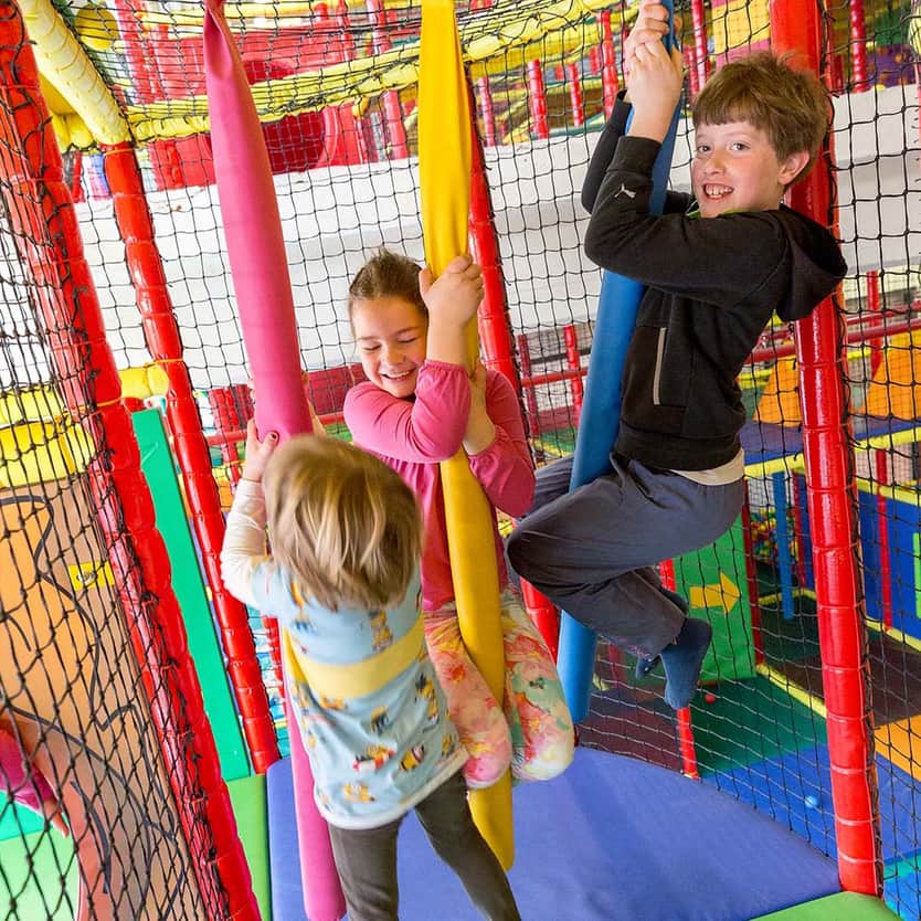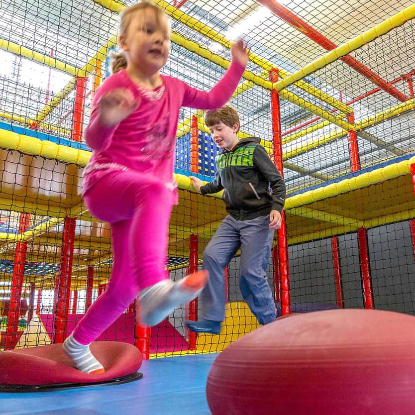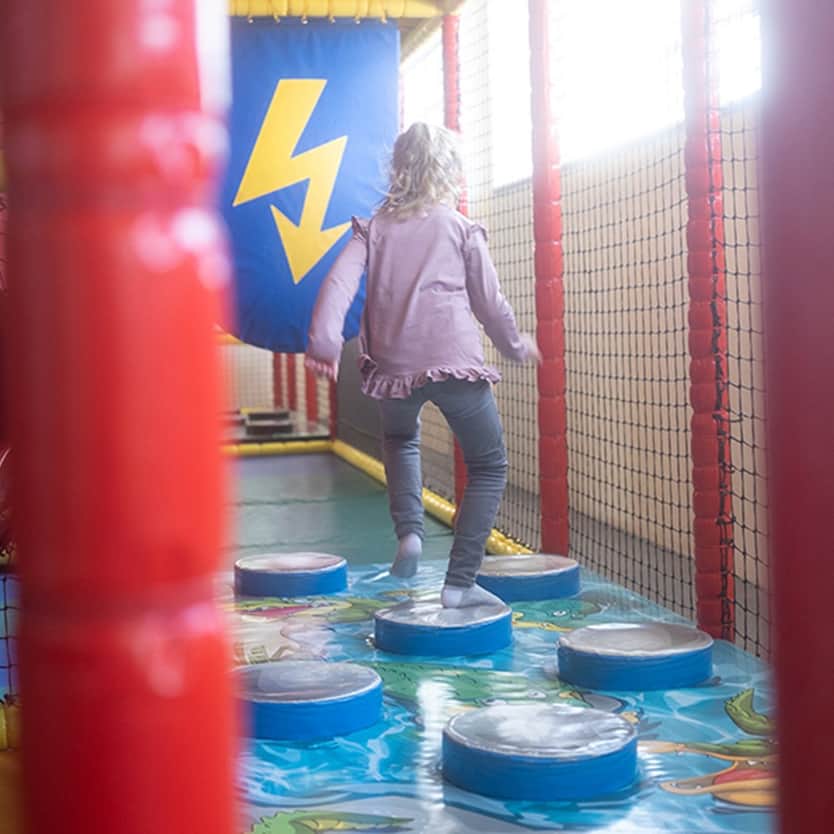 De indoor kinderspeelparadijs "Kletterburg" biedt kinderen van 4-10 jaar volop plezier op twee verdiepingen met klimmen, balanceren, schommelen en glijden - terwijl jij ontspannen door het center wandelt.